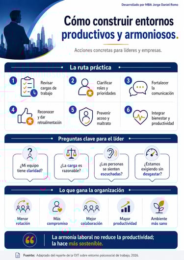 Durante años, muchas empresas han asociado la productividad con procesos, tecnología, indicadores y presión por resultados. Sin embargo, el reporte global de la OIT recuerda algo fundamental: la forma en que se diseña, organiza y dirige el trabajo influye directamente en la salud de las personas, el desempeño de los equipos y los resultados del negocio.